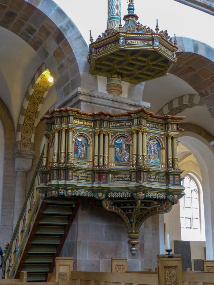 Beschilderde preekstoel van Jens Asmussen uit 1597
