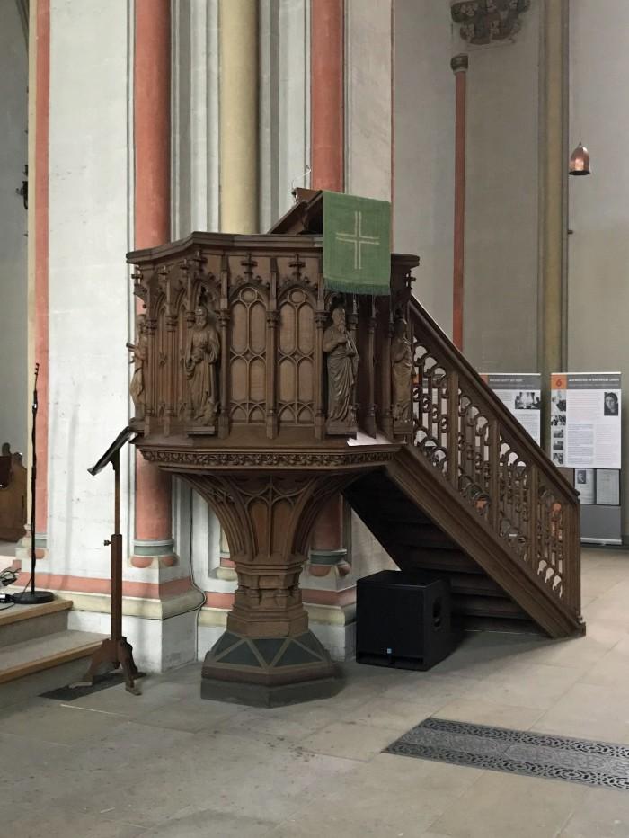 De Katharinakerk werd in 1172 door Hendrik de Leeuw gesticht. Tussen 1887 en 1890 werd het gebouw neo-gotisch ingericht, waarbij ook de huidige preekstoel werd geplaatst.Deel deze preekstoel