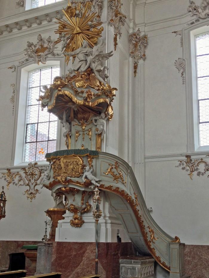 Omdat graaf Karl Albrecht von Diessen-Andechs korte tijd keizer was, wilde hij een "keizerlijk" klooster. De abt vroeg daarom Johann Michael Fischer uit München om een grootse kerk te bouwen. Deze werd in 1739 ingewijd en kreeg bij zijn 250-jarig bestaan in 1989 de status van Münster. Francois Cuvilliés, de ontwerper van het beroemde Cuvilliés-theater in München, ontwierp het hoofdaltaar als een groot decor, waarvan het altaarschilderij voor elk kerkelijk feest aangepast kan worden.De rococo-preekstoel is vervaardigd door Johann Baptist Straub uit Wessobrunn. Het relief op de borstwering toont de prekende Paulus (zie detailfoto).