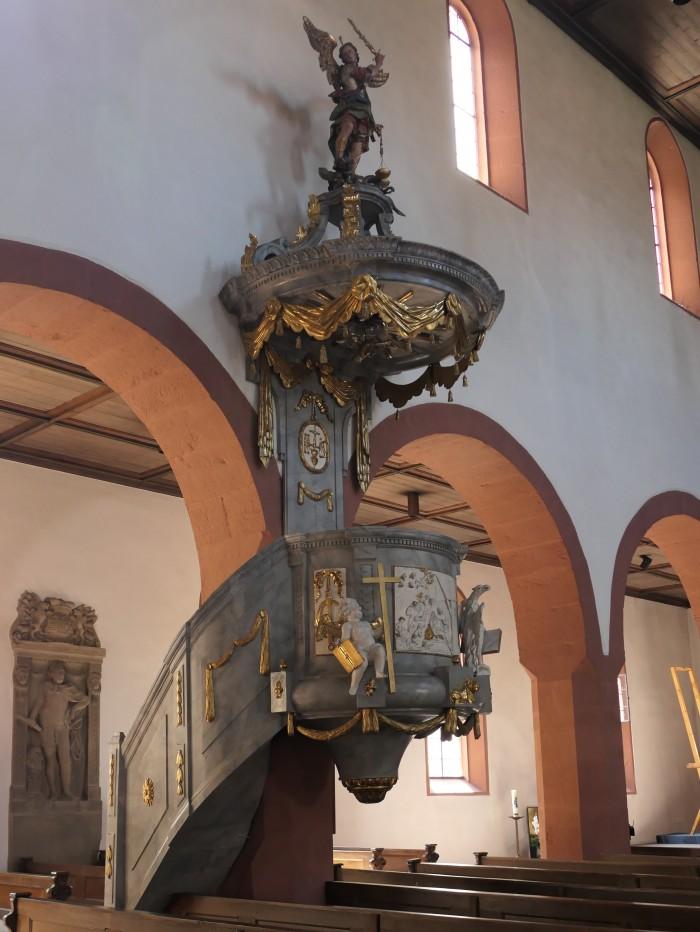 Sinds 1963 is de uit hout gesneden figuur van St. Michael, dat oorspronkelijk bij het voormalige hoogaltaar uit 1672 hoorde, bovenop het klankbord geplaatst. De aartsengel staat op de demon die hij heeft neergeslagen met het zwaard in zijn rechterhand. De weegschaal in zijn linkerhand identificeert hem als zielengids.