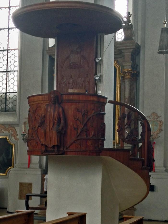 Deze kerk is bij toeristen zeer bekend, omdat hij precies naast de Viktualienmarkt en het raadhuis staat. Na een brand werd de nieuwe kerk onder leiding van Gabriel Ridler in 1392 voltooid. Tussen 1724 en 1730 werd de kerk barok ingericht door Johann Georg Ettenhofer en de gebroeders Asam.In 1957 voltooide de beeldhouwer Georg Chorherr de preekstoel. Op de trapopgang zijn de vier evangelisten afgebeeld. De detailfoto toont de evangelist Mattheus.