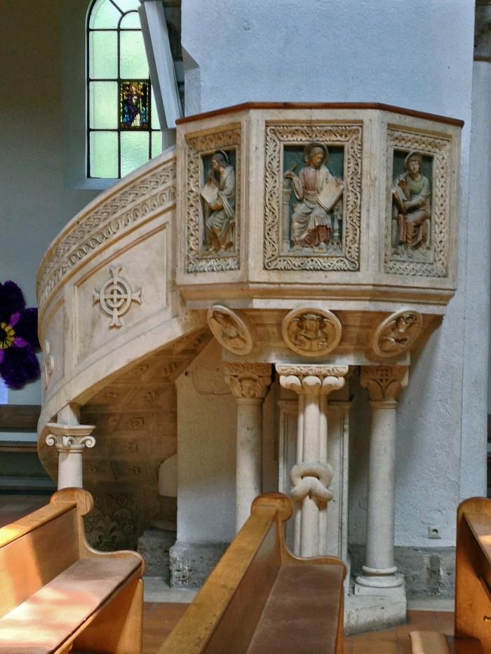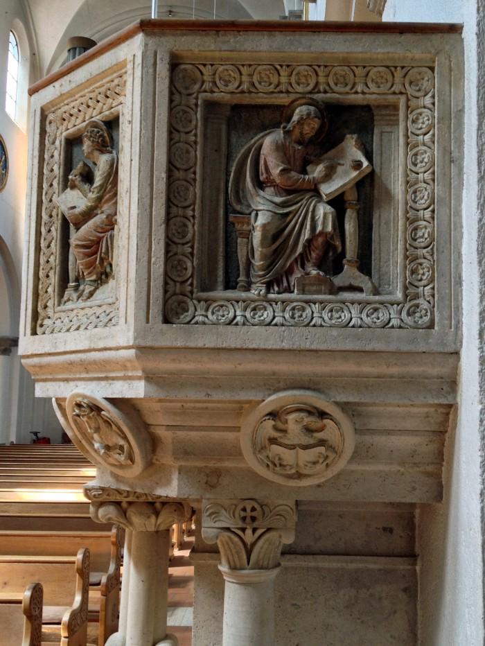 De parochiekerk is tussen 1887 en1892 gebouwd naar een ontwerp van Gabriel von Seidl en geldt als een goed voorbeeld van de neo-gotiek in München. De kerk werd gebouwd, omdat de er tegenover liggende kloosterkerk St Anna te klein werd voor de parochie.De neo-romaanse preekstoel, naar een ontwerp van Gabriel von Seidl, toont de vier evangelisten op de borstwering (zie ook detailfoto)