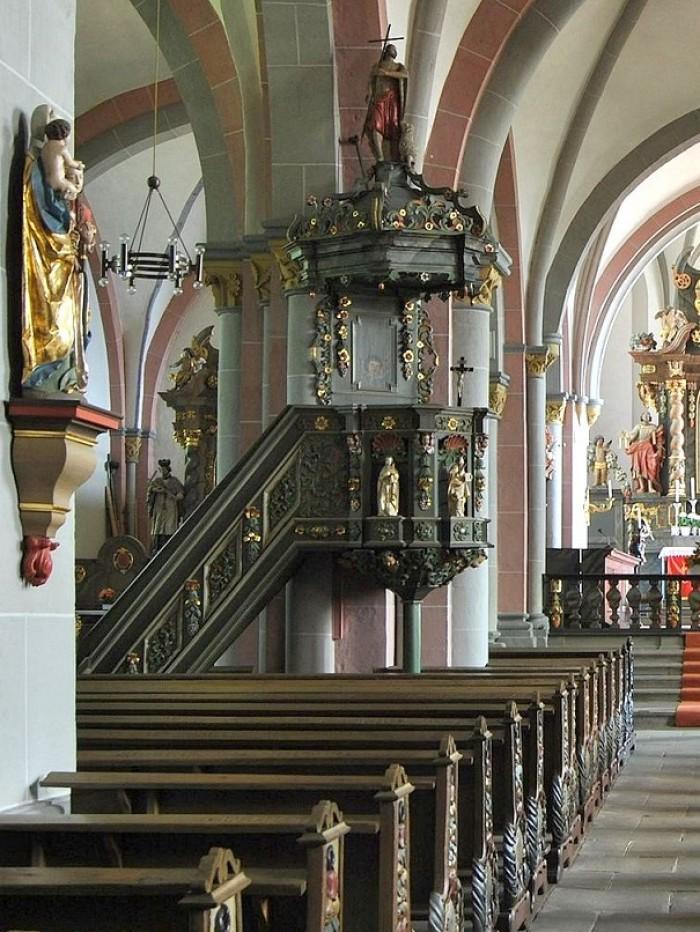 De abdij van Obermarsberg werd aan het einde van de 8e eeuw gesticht als benedictijnenklooster in kasteel Eresburg (tegenwoordig Obermarsberg). Een kloostergemeenschap bestond onder de naam Propstei tot de afschaffing ervan in 1803. De collegiale kerk is gewijd aan St. Petrus en Paulus en dateert in zijn huidige vorm uit de tweede helft van de 13e eeuw. De collegiale kerk is vandaag de dag nog steeds een katholieke parochiekerk. Tot de inrichting behoort een barok preekstoel uit 1710 die rijkelijk versierd is met engelenkoppen. Ook de vier evangelisten zijn prominent aanwezig.Deel deze preekstoel