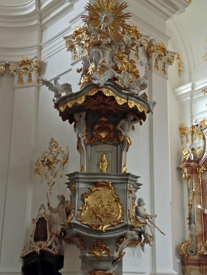 Het Benedictijnen-klooster werd al in 762 gesticht en in 1140 door de Praemonstratensen overgenomen. Deze vroegen in 1733 Francois Cuvilliés, de ontwerper van het beroemde Cuvilliés-theater in München, om een nieuwe kerk te ontwerpen. Door hem en later door Johann Michael Fischer en Johann Baptist Gunetzrhainer werd tot 1757 de rococo-kerk gebouwd.De rococo-preekstoel is gemaakt door Johann Baptist Straub uit Wessobrunn. Op de borstwering toont een relief de wonderbaarlijke visvangst (zie detailfoto)