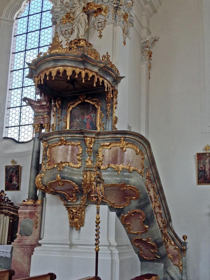 Volgens documenten stond de eerste kerk hier al in 1253. Na de verwoestingen tijdens de 30-jarige oorlog in de 17e eeuw werd vanaf 1753 een nieuwe kerk gebouwd naar een ontwerp van Johann Baptist Gunetzrainer.De rococo-preekstoel is in 1754 gemaakt door Franz Xaver Schmädl uit Weilheim.