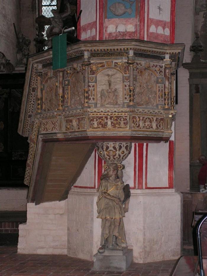 Deze preekstoel dateert uit 1611 en is afgebeeld met verhalen uit het leven van Jezus. De stoel wordt gedragen door Mozes. Bij de ingang staan de apostelen Petrus und Paulus, met daarboven de zondenval. Aan de zijkant van de opgang naar de preekstoel zijn de vier apostelen afgebeeld. Het klankbord boven de preekstoel is uit 1678.Deel deze preekstoel