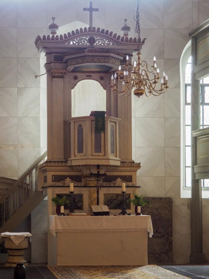!n de jaren 1850/1860 werd het interieur van de Wendische kerk herbouwd en werd een tongewelf en de dubbele galerij geïnstalleerd, het "oog" in de oostgevel, een preekstoelaltaar en een orgel.