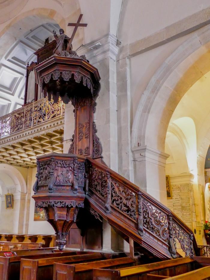 Rijk bewerkte houten preekstoel uit de 18e eeuw.Deel deze preekstoel