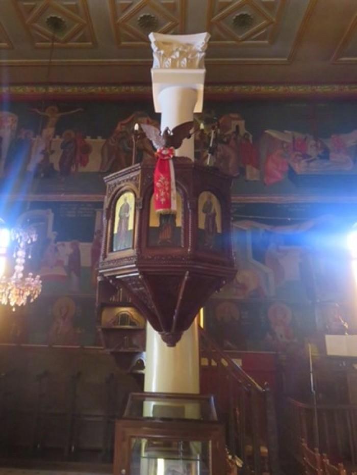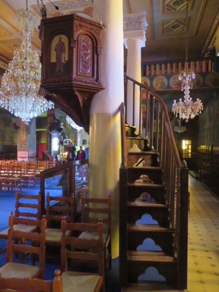 Vermoedelijk dateert deze kerk van rond 1280.De stichter van de kerk is waarschijnlijk RomeinsAartsbisschop van Korinthe Wilhelm von Moerbeke (1277-1286). Binnen een hooggeplaatste byzantijnse preekstoel te bereiken via wenteltrap.