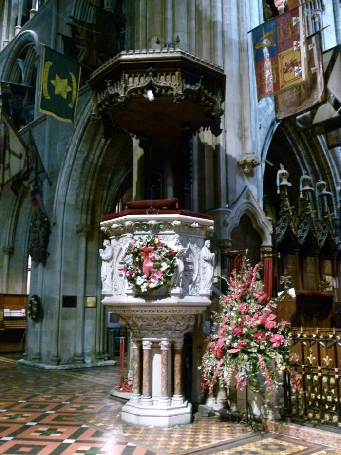 Ter gelegenheid van zijn 50e verjaardag als priester ontving kardinaal McCloskey een prachtige marmeren preekstoel als gift van de het priestergezelschap.De 2e foto (uit 2014) is afkomstig van Wolter Klimbie.