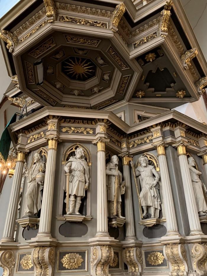 Het houtsnijwerk uit de ateliers van Baltische meesters vormt het hoogtepunt van deze 17e-eeuwse preekstoel en behoort tot de grootste sacrale kunstschatten van de regio.Deel deze preekstoel