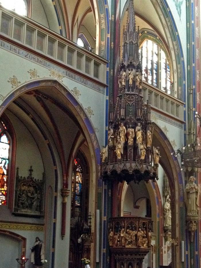 Deze neogotische kerk is in 1883 gebouwd naar een ontwerp van de architect Alfred Tepe in opdracht van de Jezuïeten. De kerk is dan ook officieel genoemd naar de Jezuïet Franciscus Xaverius, maar deze naam is bij vrijwel niemand bekend. De eikenhouten preekstoel is van de hand van de Roermondse beeldhouwer Pierre Cuypers en is in 1997 gerestaureerd.Deel deze preekstoel