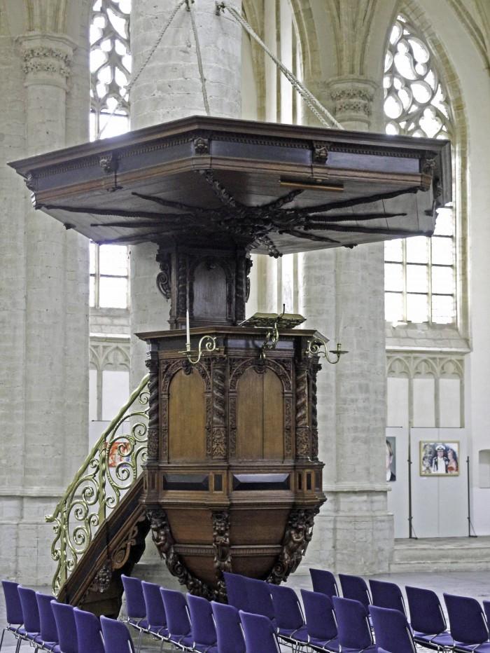 De 15e-eeuwse Grote Kerk van Breda is een gebouw met een rijk cultuurhistorisch verleden. Niet alleen de imposante architectuur van de buitenzijde van het gebouw, maar ook de in de kerk aanwezige monumenten, gewelf- en muurschilderingen maken het gebouw tot het belangrijkste monument van Breda.De geelkoperen trapleuning van de preekstoel heeft de vorm van een slang met dolfijnen-kop
