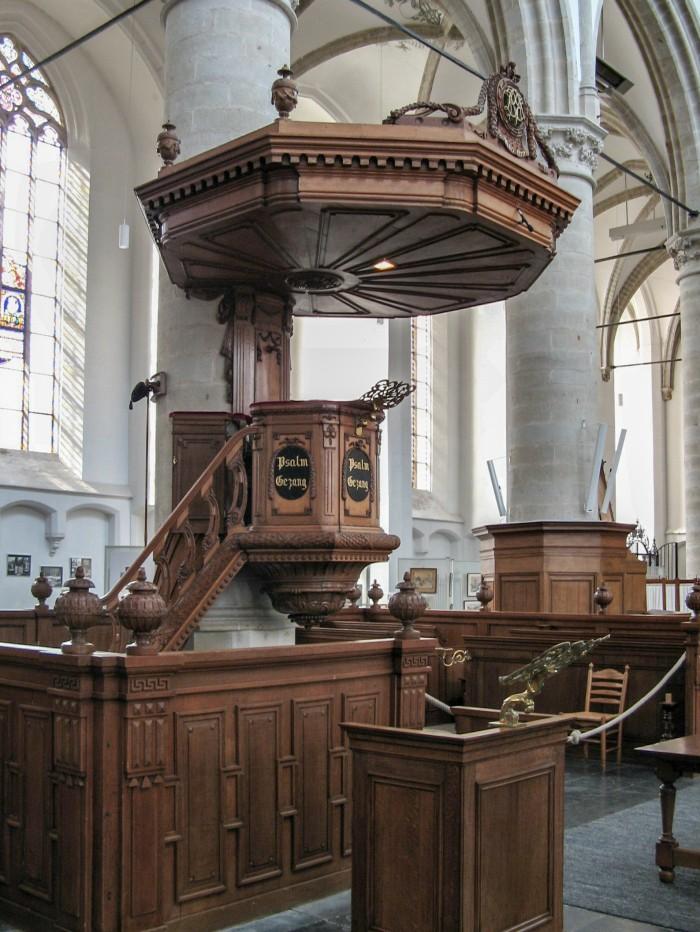 De eikenhouten preekstoel en de zogenaamde dooptuin zijn een geschenk uit 1778.Deel deze preekstoel