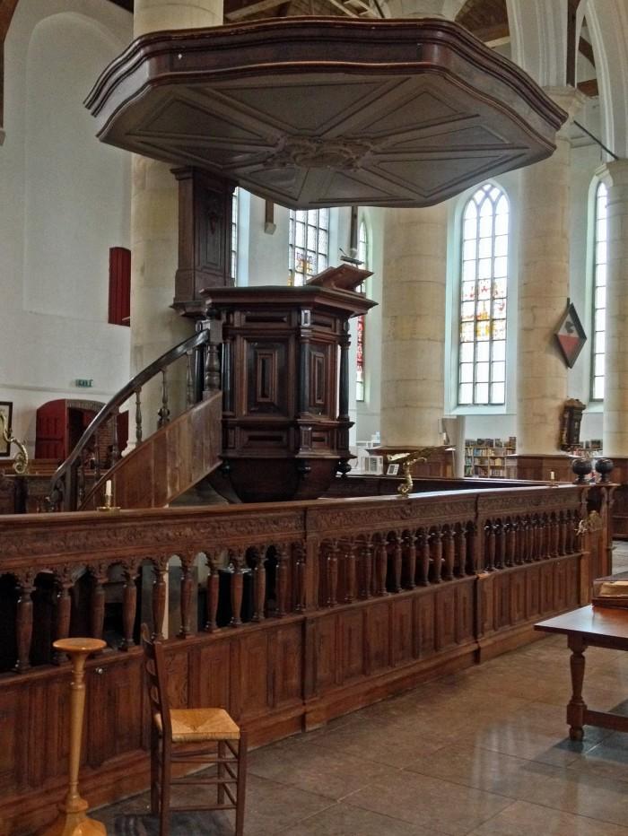 De Grote of St Nicolaaskerk in Edam is gebouwd tussen 1440 en 1518 en is de grootste hallenkerk van Nederland. De preekstoel is na de reformatie vervaardigd als onderdeel van de zogeheten dooptuin in 1649 door Harmen Jansz Bost in een laat-gotische stijl. Deze preekstoel dient als preekstoel, wanneer de grote kerk helemaal gebruikt wordt, omdat hij midden in het kerkschip staat.Deel deze preekstoel