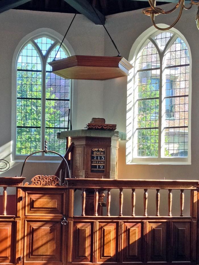 De kapel is afkomstig uit Den Oever, deze is daar steen voor steen afgebroken en rond 1968 in het Zuiderzeemuseum weer opgebouwd. Het aangrenzende gasthuis is niet herbouwd. De kerk wordt geregeld gebruikt voor trouwerijen en af en toe ook voor kerkdiensten. De toren is een ontwerp van de architect Cornelis de Jong (de Rijp). De preekstoel is volgens een inscriptie op de kuip uit 1704.Deel deze preekstoel