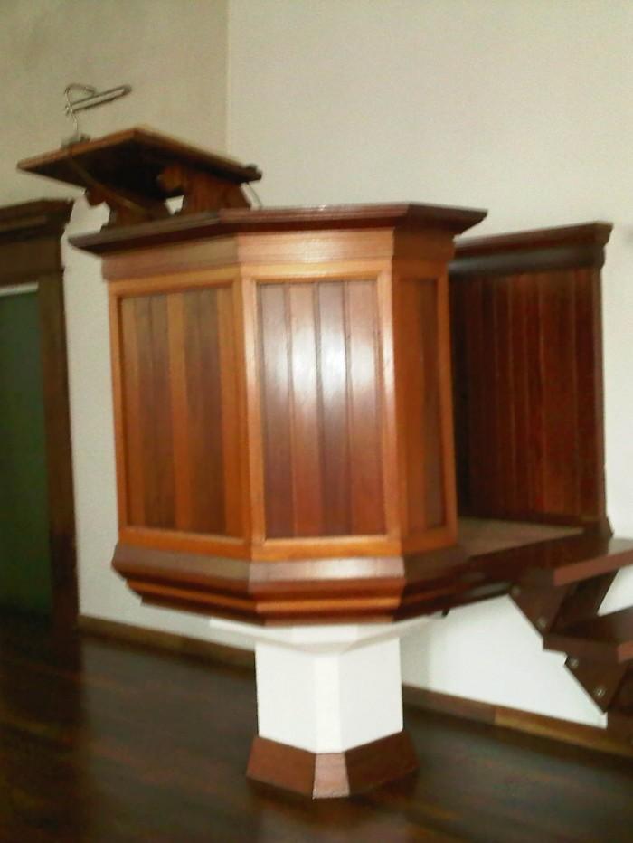 Ontwerp uit 1893 door J. Carmiggelt, Gemeente-architect van HoogeveenDeel deze preekstoel