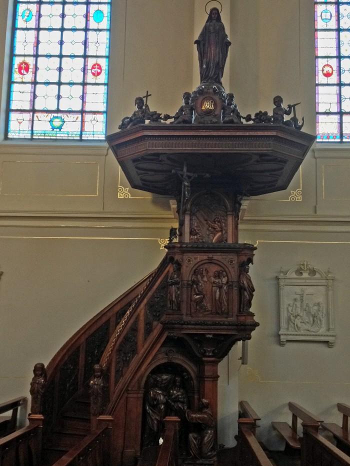 De Koeliekerk in Leiden wordt door de gemeente aangeduid als de Hartebrugkerk en heet zelfs, héél officiëel de kerk van Onze Lieve Vrouw Onbevlekte Ontvangenis, maar deze laatste naam kent helemaal niemand. De kerk is wijd en zijd bekend als de Koeliekerk, omdat op de voorgevel aan de hoofdwinkelstraat van Leiden in grote letters staat "Hic Domus Dei est et Porta Coeli" (dit is het huis van God en de poort naar de hemel).Dit is een zogenoemde Waterstaatskerk in neoclassicistische stijl, ontworpen door Theo Molkenboer en op 28 november 1837 ingewijd. In 1880 werd door de parochianen de eikenhouten preekstoel geschonken aan de pastoor bij diens 50-jarig priesterfeest. Bovenop de preekstoel staat een houten beeld van Maria, de patrones van de kerk.