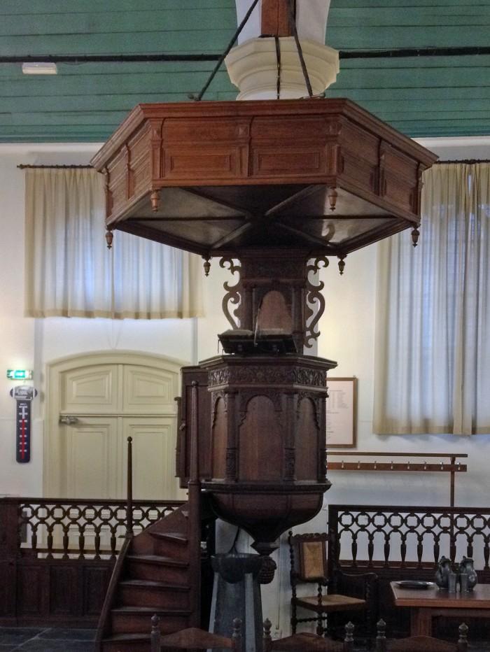 Deze kerk is in 1620 gebouwd op de fundering van de door de Spanjaarden verwoeste kerk. Tijdens een restauratie in de jaren 1965-1970 is de preekstoel met koorhek vervangen door de huidige 17e eeuwse preekstoel, die afkomstig is uit Opmeer in Noord-Holland.Deel deze preekstoel