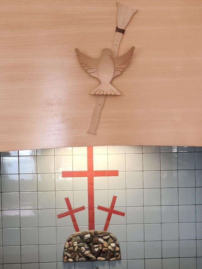 Bouwjaar kerk (vermoedelijk ook de preekstoel) 1915, bad voor doop onder de preekstoelDeel deze preekstoel