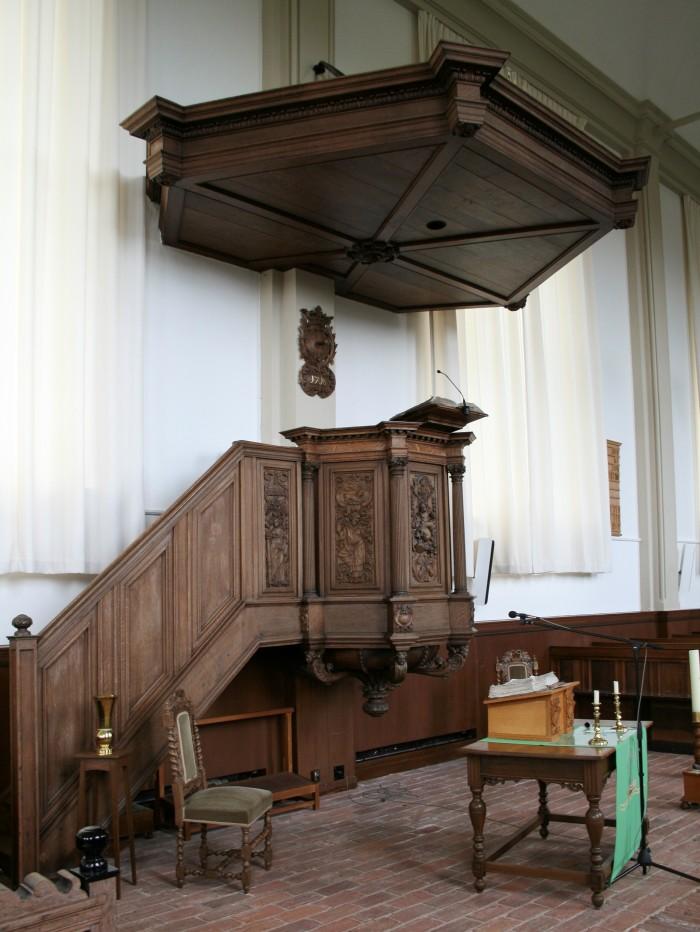 De kerk in Nieuwolda is gebouwd in 1718, de toren is aangebouwd in 1756. In de kerk bevindt zich een preekstoel met gecanneleerde zuilen, waartussen panelen met houtsnijwerk zijn aangebracht (zie detailfoto). Ook heeft de preekstoel een klankbord en een cartouche met daarop een kapstokknop.Deel deze preekstoel