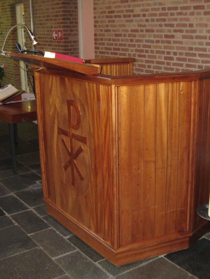 Kansel in de Doopsgezinde Remonstrantse Kerk in Nijmegen (1962).Deel deze preekstoel