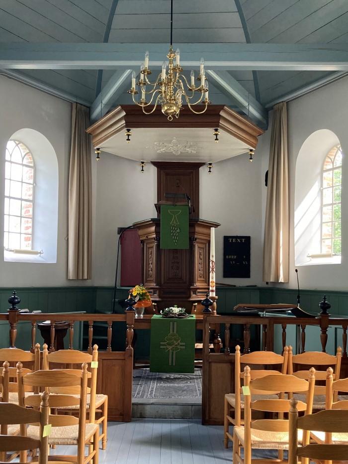 Een kerk van middeleeuwse kloostermoppen. Een van de weinige in de omgeving met deze baksteen. Dit is trouwens pas (weer) sinds 2002 zichtbaar, toen een beklamping van kleine stenen is weggehaald. Het westelijke front is van een kleinere steensoort en de geveltoren (1802) is met hout bekleed.Bij de restauratie is inwendig het houten tongewelf weer tevoorschijn gekomen. Binnen het doophek met balusters en gedraaide knoppen staat een preekstoel uit 1802 met oudere elementen. Ook is er een bijzonder fraaie orgelgalerij met het Van Dam-orgel uit 1880.