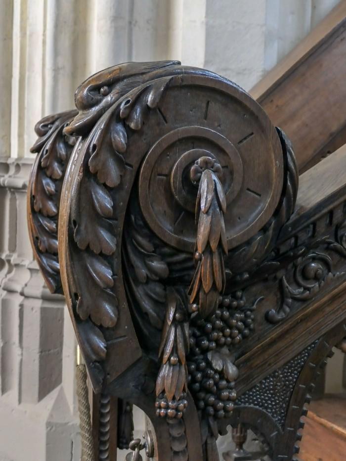 De preekstoel uit 1550 werd in gedeelten vervaardigd is duidelijk geinspireerd op motieven en vormen van de renaissance. Zowel de kuip als het baldakijn erboven hebben een zeshoekige vorm. De kuip is aan de onderkant voorzien van een gesneden gewelf dat steunt op een forse hoofdpijler die omringd door zes slanke Korinthische zuiltjes die mede de kuip dragen. De Korinthische zuiltjes worden herhaald op de hoeken van de kuip. Daartussen zijn op de panelen van de kuip fraaie reliëfs aangebracht waarop predicaties uit het Nieuwe Testament worden uitgebeeld. De verbinding tussen kuip en baldakijn wordt gevormd door een fraai gesneden paneel waarop is afgebeeld hoe de kerkpatroon, Sint Jan de Evangelist, wordt gemarteld in de kokende olie. Het klankbord wordt bekroond door een eveneens zeshoekige, overdadig versierde troonhuif van zes meter hoogte. Ook hier nemen de verkondigers van het geloof een belangrijke plaats in behalve de vier evangelisten, enkele apostelen en kerkvaders zijn ook oudtestamentische profeten weergegeven.Deel deze preekstoel