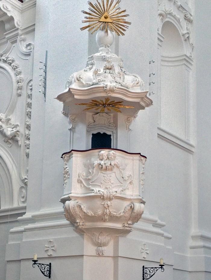 Deze barokke kerk is gebouwd als kerk voor de universiteit en werd in 1707 ingewijd. De kerk diende als voorbeeld voor vele kerken in Zuid-Duitsland, zoals Ottobeuren en Einsiedeln. Van binnen is de kerk opvallend wit, doordat alle stucwerk in wit is gehouden.De preekstoel uit 1774 is van hout, afgewerkt met stuc.