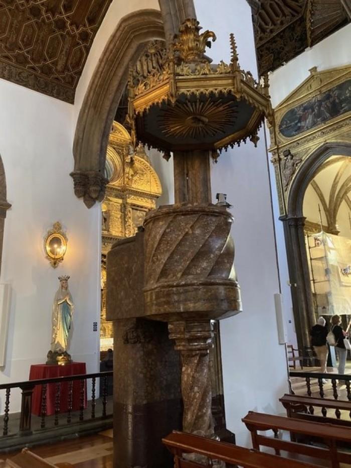 De Kathedraal van Funchal, Sao, werd gebouwd in 1514 en o.a. gefinancierd door koning Musel I. Hij schonk ook een processiekruis, de kansel en het doopvont.Deel deze preekstoel
