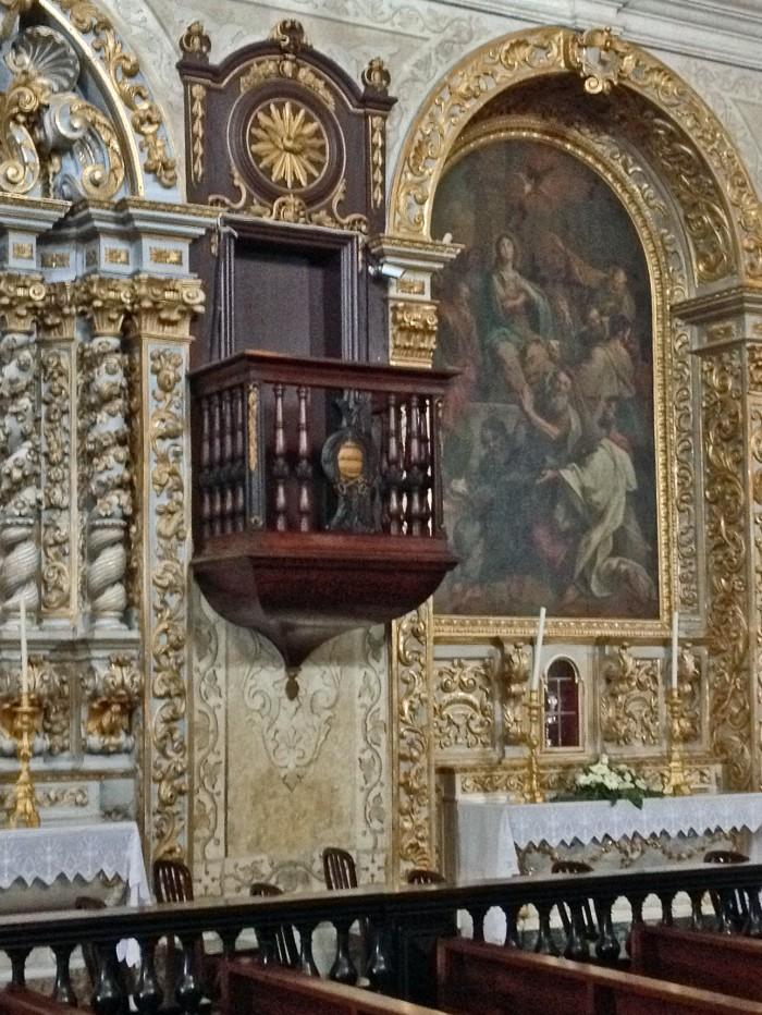 Deze kerk stamt uit 1499, maar werd in 1733 gerenoveerd in barok-stijl. De preekstoel werd daarbij vervangen door een exemplaar van jacaranda-hout uit Brazilië.Deel deze preekstoel
