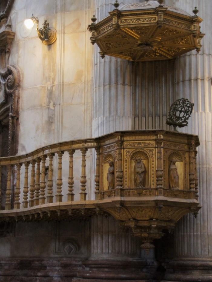 Twee gouden preekstoelen omlijsten de achthoekige tabernakel.Elke preekstoel heeft een prachtige toegang.