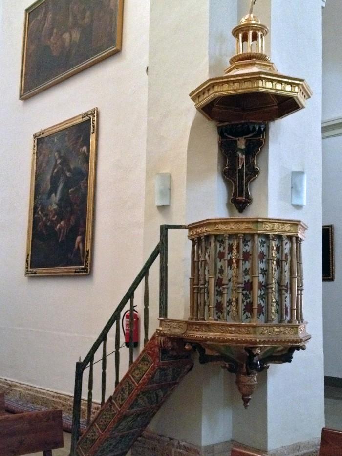 Na de verovering van Granada werd deze kerk naast het paleis van Karel V gebouwd als eerste kathedraal van Granada, in afwachting van de komst van het gereedkomen van de kathedraal in Granada. Juan de Herrera begon met de bouw in Renaissance-stijl in 1581 en Ambrosio de Vico voltooide het in 1617. De preekstoel is gemaakt door Martin de Aranda. Het bijzondere aan deze preekstoel is, dat de "borstwering" niet massief is, maar uit losse spijlen bestaat, waartussen een doek is gespannen. In de Capilla Real van Granada ontbreekt zelfs dit doek.Deel deze preekstoel