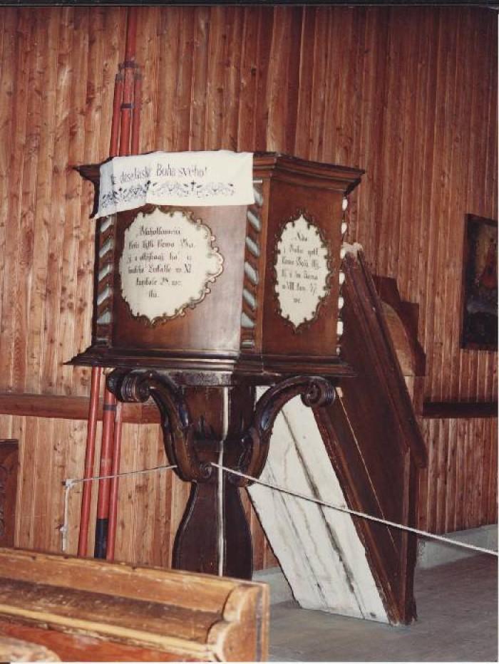 In het plaatselijke openluchtmuseum staat het kerkje Svate Anny. Daarbinnen een mooie houten preekstoel.Deel deze preekstoel