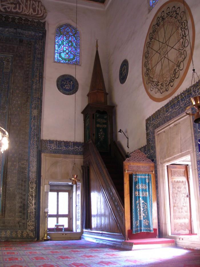 In een hoek van de moskee staat de minbar [preekstoel], waar de imam een aantal zegeningen en de preek, de khutbah, uitspreekt tijdens het gezamenlijke gebed op vrijdag.Deel deze preekstoel