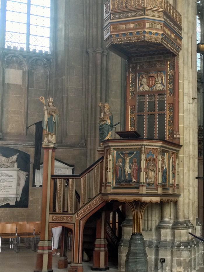 In 1898 vervaardigd door George Bordley in de Gothic Perpendicular stijl. Links en rechts van de trap staan St Augustinus en paus Gregorius de Grote, omdat Augustinus in opdracht van Gregorius vanaf 590 Kent ging kerstenen.Deel deze preekstoel
