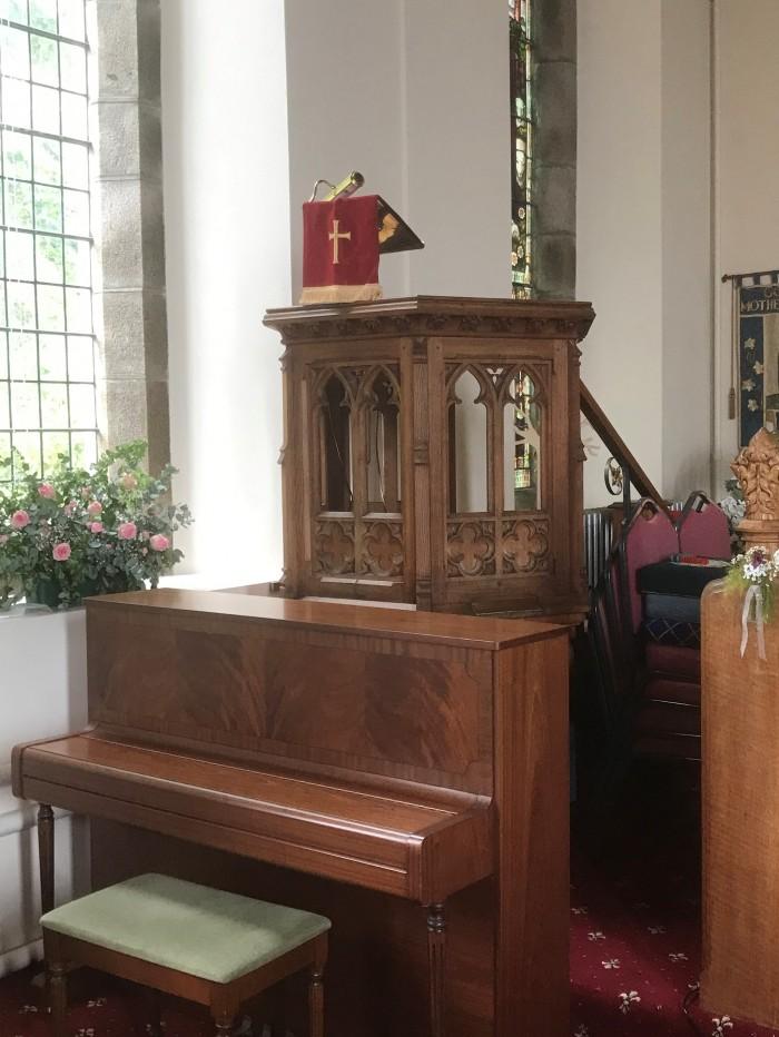 In 1915 is de eenvoudige preekstoel geplaatst, toen de kerk meer bezoekers kreeg, met name soldaten.