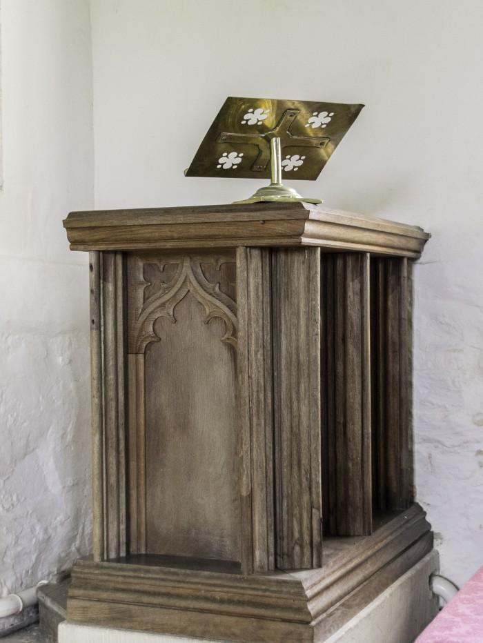 Deze preekstoel is uit 1920 en ontworpen door Mr Coleridge. De preekstoel is gemaakt van eikenhout dat gevonden is onder de oude west galerij. de preekstoel verving een eerdere die geschonken was door Mrs Graeme.Deel deze preekstoel