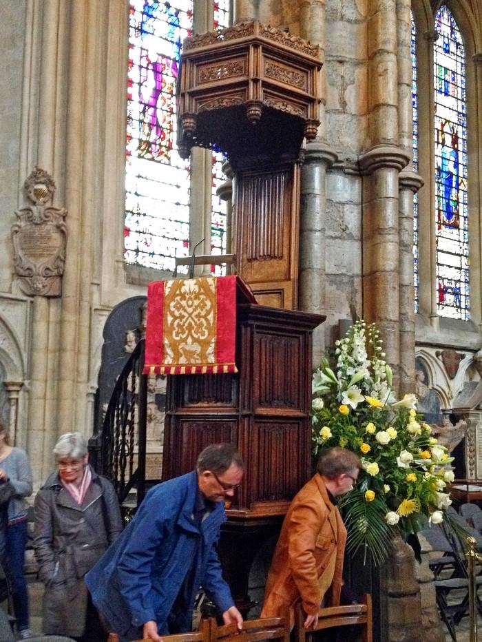 Deze eenvoudige gotische preekstoel is begin 15de eeuw geplaatst. Vanaf deze preekstoel heeft de aartsbisschop van Canterbury Thomas Cranmer Edward VI toegesproken bij diens kroning in 1547.Deel deze preekstoel