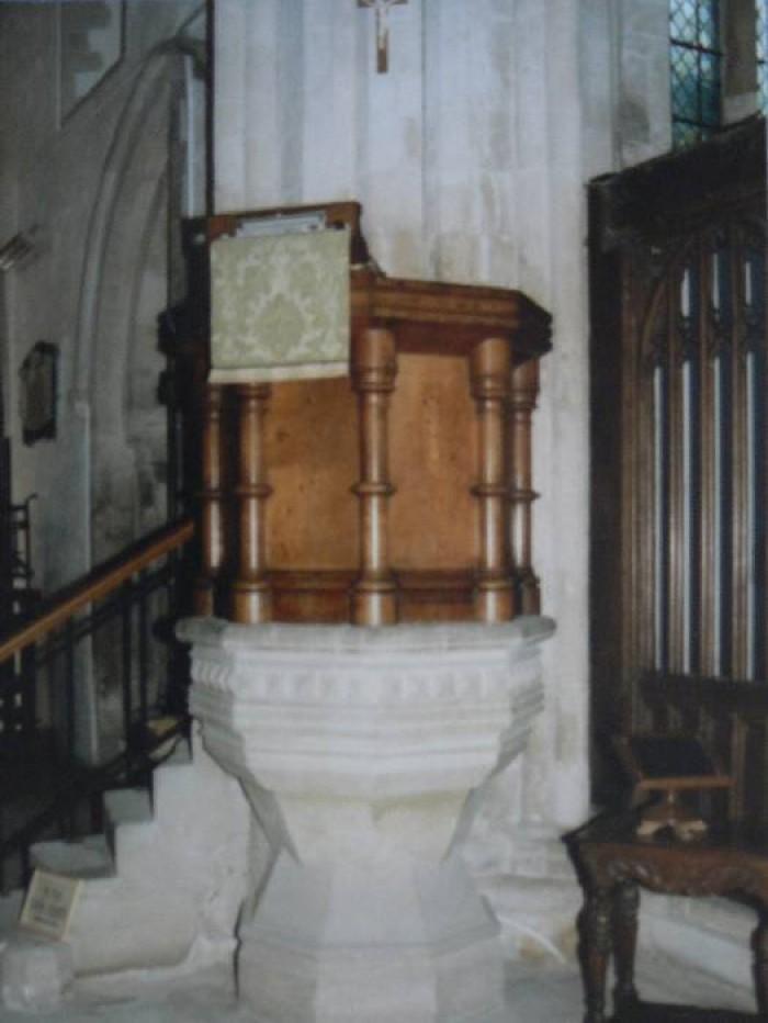 Eenvoudige donker eikenhouten preekstoel in gotische stijl.Deel deze preekstoel