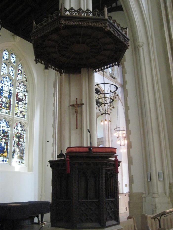 Preekstoel vervaardigd door Sir Gilbert Scott in 1860/70, ter vervanging van een eerder middeleeuws model.Deel deze preekstoel