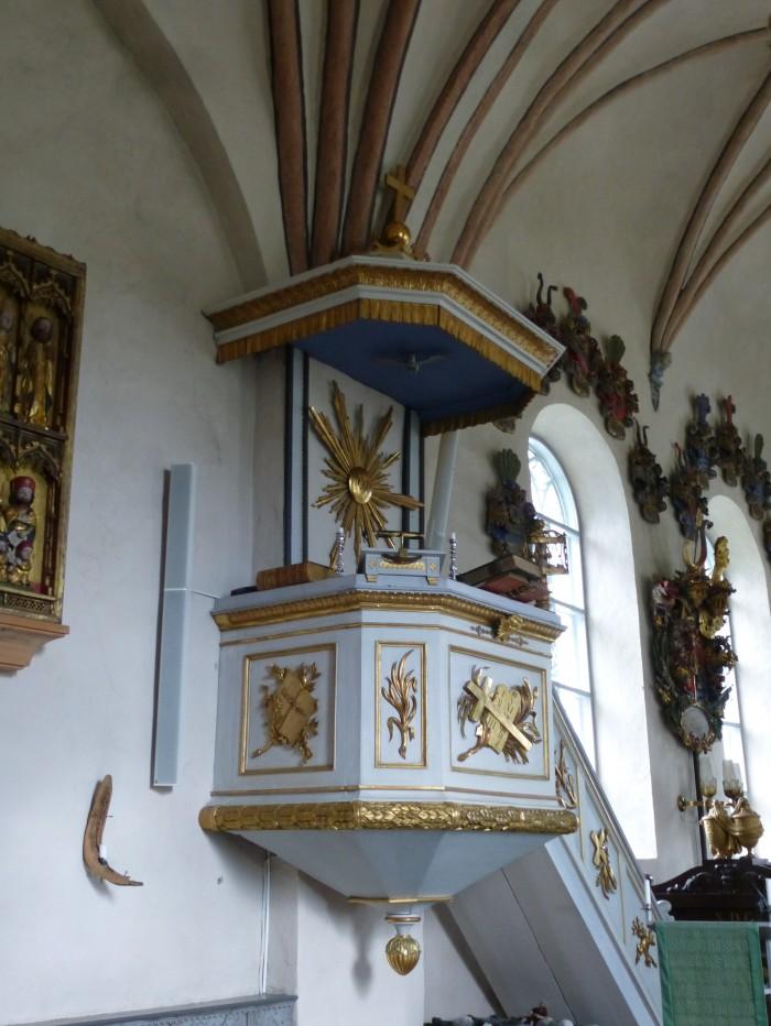 Deze preekstoel is in 1847 gemaakt door de firma Dahlman uit Västerås. Hij is eenvoudiger van uitvoering dan de oorspronkelijke preekstoel. Deze was in 1673 als kerstcadeau aan de kerk geschonken en werd is 1847 afgedankt. In 1880 is hij spoorloos verdwenen.