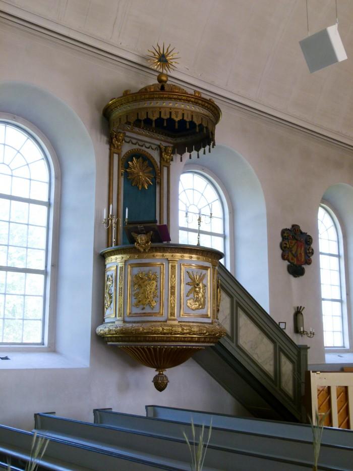 Preekstoel met zonnesymbool uit 1845, ontworpen door Abraham Nyström.
