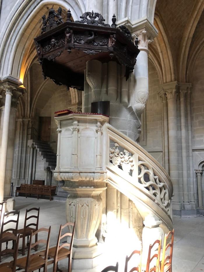 De gotische kathedraal, die in 1275 werd ingewijd, werd tijdens de reformatie in 1536 beroofd van een groot deel van het interieur.Tussen 1873 en 1876 restaureerde Eugene Viollet-le-Duc de kathedraal en bracht daarbij ook weer diverse elementen aan in het interieur, zoals de preekstoel.