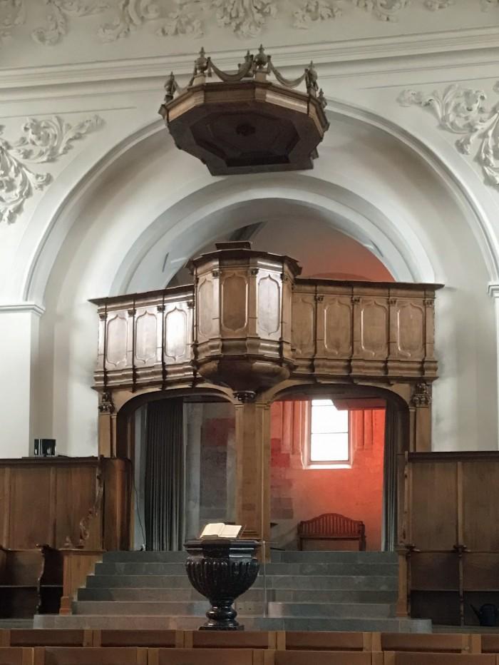 De eerste gereformeerde kerk van Zürich, waar eerst een vriend van Zwingli 20 jaar pastoor was. Hij werd opgevolgd door de schoonzoon van Zwingli, die 33 jaar pastoor was.De barokke preekstoel met omgang van notenhout werd in 1706 geplaatst.